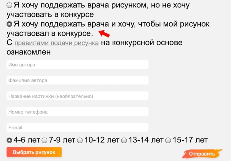А мы напоминаем, что загружая рисунок в поддержку любимого врача, вы можете выбрать, принимать ли участие в конкурсе рисунков.